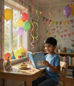 What is a child’s perfect birthday party? Balloons, Cake, Ice Cream, Clowns, Gifts, and all kinds of other fun things of course. All of these dreams will come true when a real surprise party is waiting for your child at the end of the story. The MOST important surprise of all is that the day is shared with loving family and friends.
