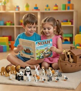 This is a wonderful book which tells the popular biblical story of Noah’s Ark and his animal friends. Not only will your child learn the story of Noah’s Ark, but he or she will also see text from the Bible. After explaining why God was not pleased with Man, Noah becomes the re-builder of earth’s creatures. This beautiful and detailed rendition of the dramatic original story will draw your child in as it is written in a way which is easy for them to understand and enjoy. They will read it over and over again!